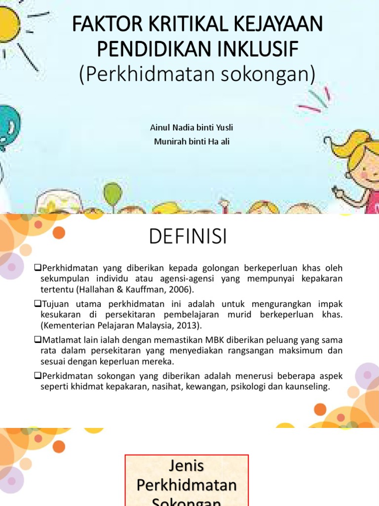 Supiah saad 2003 Hanya 20 18 guru prasekolah aliran perdana tahu definisi pendidikan inklusif. View KHIDMAT_SOKONGAN_GCpdf from BC 3103 at IPG Kampus Bahasa Melayu. Baik terhadap semua murid berkeperluan khas termasuk ahli keluarga dan pakar yang terlibat dalam memberi perkhidmatan pendidikan dan khidmat sokongan.