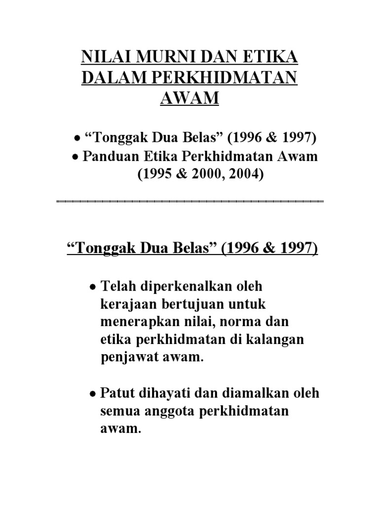Nilai Murni Dan Etika Dalam Perkhidmatan Awam Tonggak Dua Belas